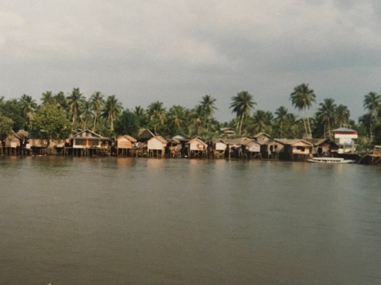 ” The approach to Banjarmasin was really impressive, a wide river that cut deep into the jungle leading lead to the town. Villages could be seen in small clearings along the river bank; houses on stilts, people travelling by canoe, everything revolves around the river.