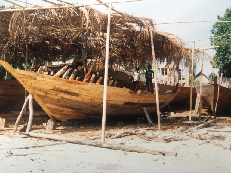 Back to from letters, “On Sunday night we anchored at Batulicin on the south east tip of Borneo. This was an amazing place where they build wooden Bugis Schooners. There must have been 25 of them under construction on the river banks and some of them were over 100 feet long.”