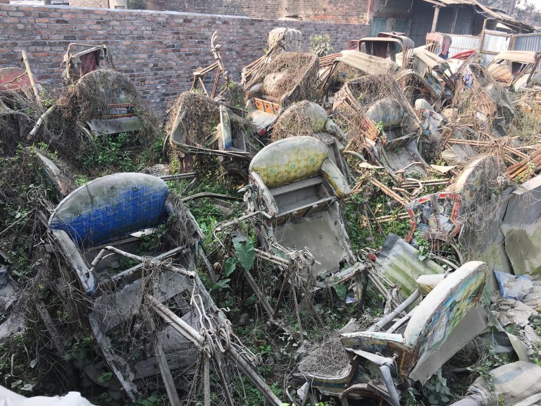Hundreds of lorries queued at the Bangladesh border carrying rock from Himalayan rivers. A mixture of rough trucks heavily loaded stood in long lines. Eventually we entered Bangladesh through a gate in a razor wire fence.
