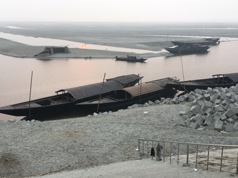 We got down to the ghat on the Brahmaputra at Chilmari early the next morning as the sun was rising, which gave the water an orange tinge, that clearly defined the sand islands that lay in the distance. Several dark wooden boats were moored at the river bank. We needed to cross the Brahmaputra which is a good 10km wide at this point and there are many sand islands called chars. The chars are a fragile environment that are home to several million people. The islands emerge after the monsoons and after a few years become fertile enough to farm. Eventually people move onto them and villages form. However after any monsoon the islands can get washed away. It is a very fluid landscape and the char dwellers are some of the poorest people in Bangladesh.