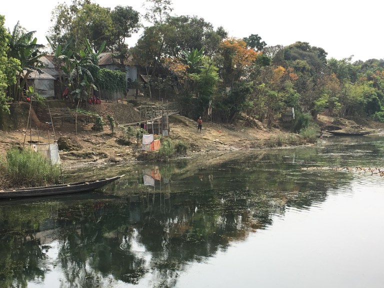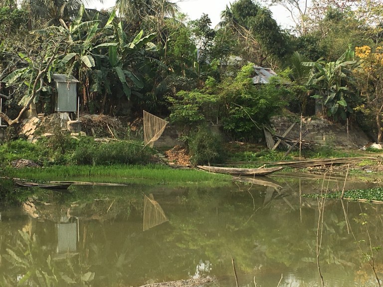 Eventually the way returned to lovely flat mud tracks by small rivers and through pretty villages. We were back in the quiet rural scene that we like so much in Bangladesh.