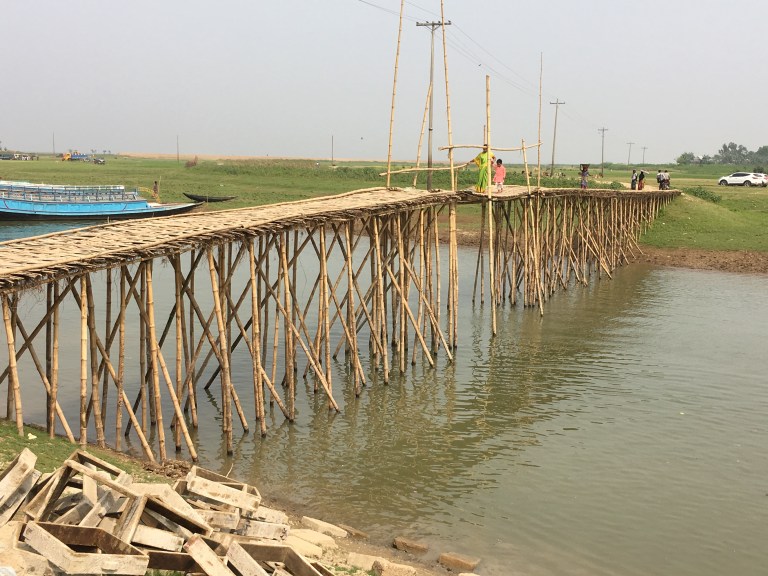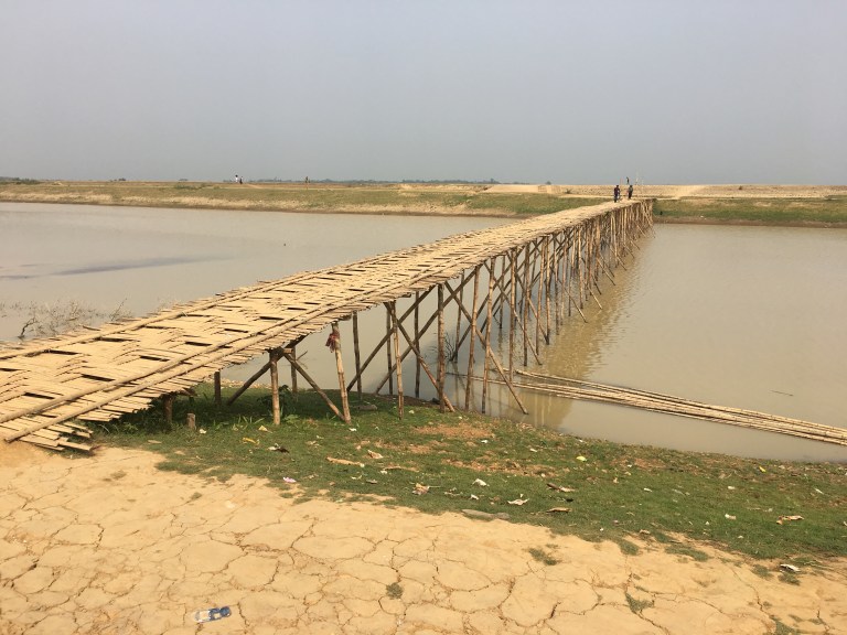 Delicate bamboo bridges and small overloaded boats got us across the rivers.