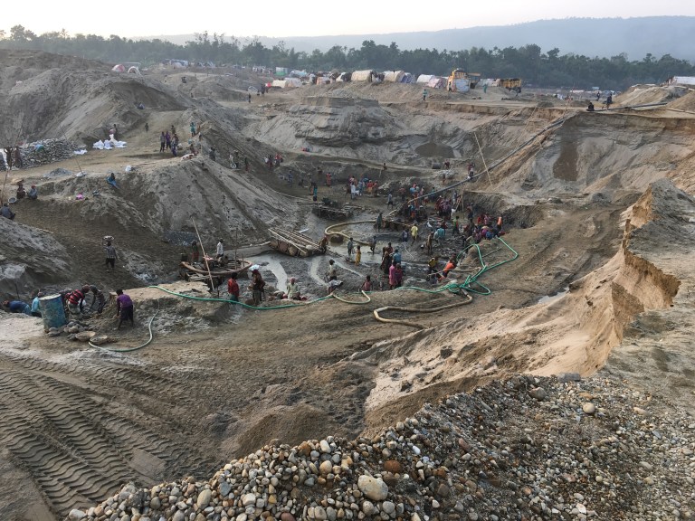 Now close to the mountains of Meghalaya we were entering a region for rock and sand extraction. Every river near the border with India was alive with people digging, and trucks and boats transporting material way. The air was filled with dust from the noisy rock crushers. The lorry traffic was manic and relentless. The trucks kept coming one after another, rolling and lurching around the deep potholed roads. It was very hard going for us on these roads that had been wrecked. They were almost at the stage that they were becoming impassable for the lorries. Progress was slow but we pushed on and thought how ridiculous it is to destroy the roads just for the need to supply the construction industry, and how it must affect the local people’s lives.