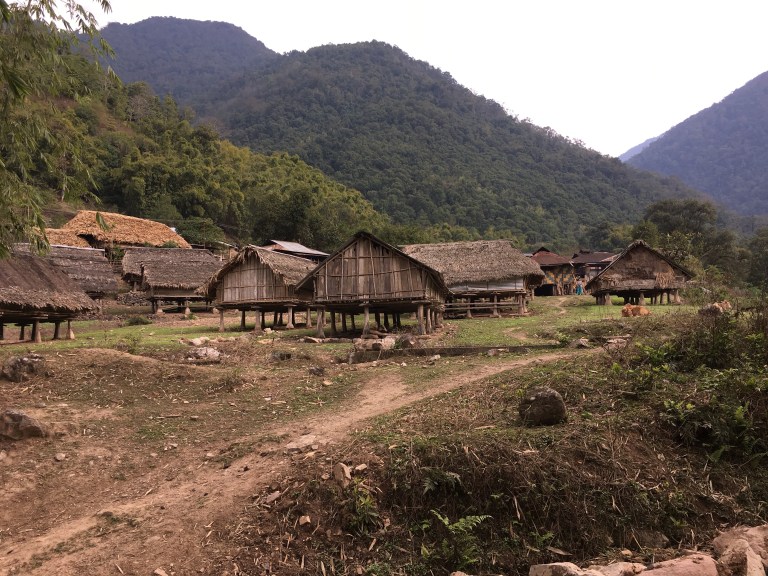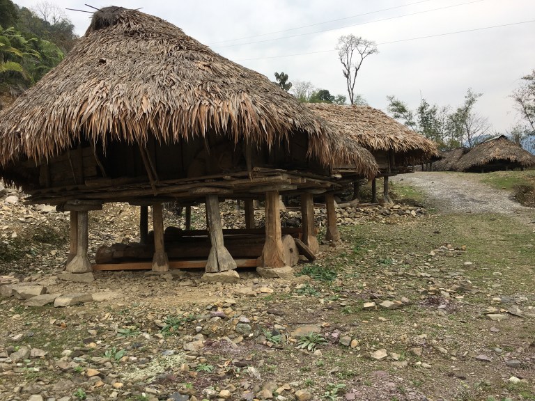 The bamboo thatched houses sat on low stilts, often with staddle stones too. Hunters sometimes appeared from the forest with long slender rifles and a game bag on their backs.