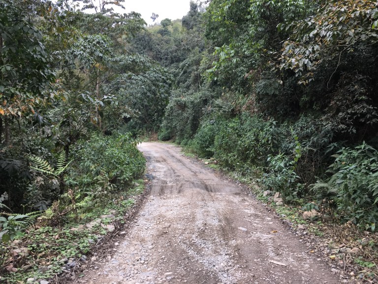 We were finding it hard to get food and when places came up you had to buy what you could. We are carrying a fair bit of supplies now and often rely on filtering water from streams. When we were cooking our lunch by the track in the most beautiful location with a grand scale vibrant landscape around us, a small police truck pulled up and wanted to see our permit to travel in this area. He spoke good English, quite a senior chap in plain clothes, and had two assistants in camouflage clothing with him. An automatic rifle lay out in the back of the truck. He was quite official like to start with, but then after a long look at our permit, he became more relaxed, and was amazed by our trip. After asking our ages, there was a belwedered look and he said” you are on quite an adventure” After a look at our maps.me app on my phone which he thought was amazing, saying “how can this work” they continued on their way and we went on ours heading upto the village of Jambo.