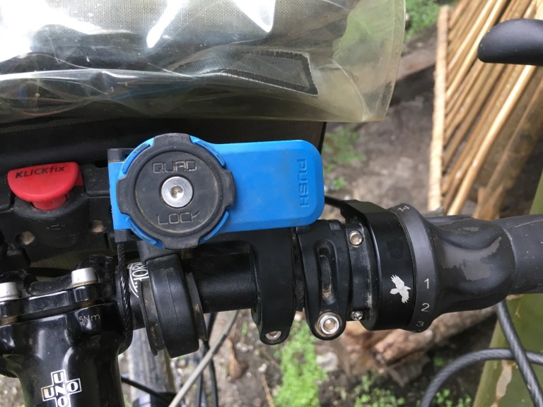 3) HANDLEBAR PHONE BRACKET: Quadlock bike bracket and phone case.