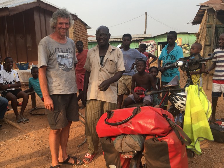 With the countryside remaining quite similar, plantations and areas of scrubby farming, or just abandoned land that had returned to tall grass with the odd tree, our journey was becoming slightly bland. Some of the colour and adventures were missing. It had been a long haul across Côte d’Ivoire and Ghana with fairly unchanging scenery . We were feeling fatigued, lacking enthusiasm to wave and say greetings to everyone in the heat and humidity. Had we been cycling for too long? Had Africa got to us? Why weren’t we enthused? We felt grumpy, this was not good.