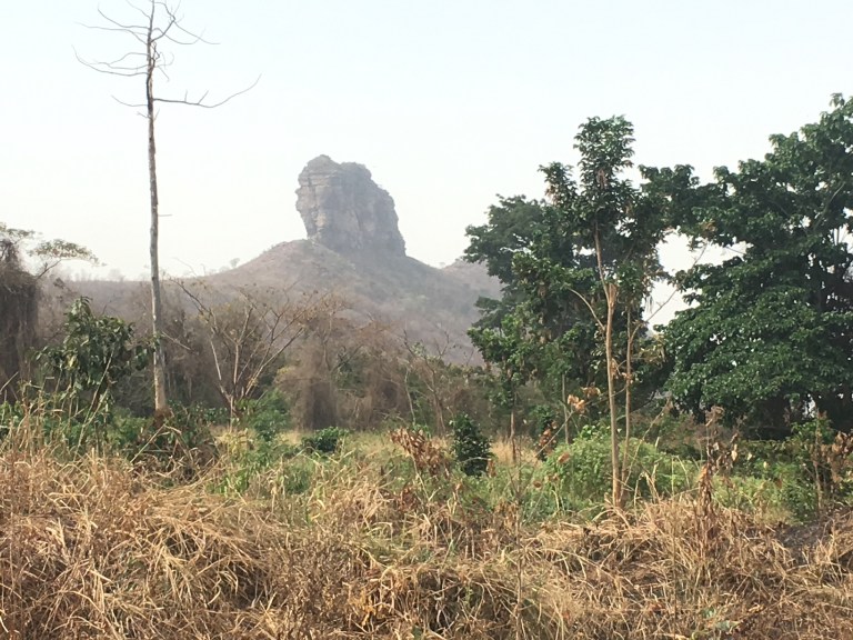 From the day when the gears broke our journey became reinvigorated. We met good kind people and and the route became varied again. As we approached the Kwawu Plateau the steep rocky escarpment came into view towering above the green rolling land of plantations. The road twisted its way steeply upwards climbing through tropical forest and craggy cliffs.