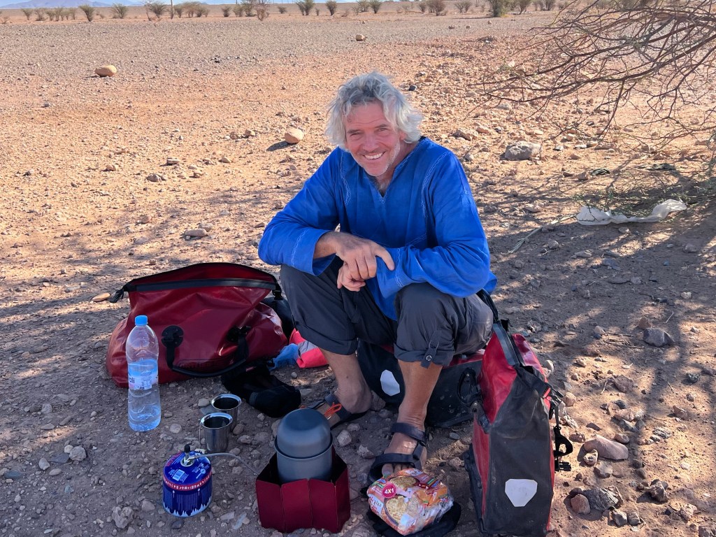 Often for lunch we would brew up coffee and noodles out in the huge expanse of the rocky desert. It felt like a really empty place. Camels appeared here and there with a lonely herds man and occasional nomads tents could be seen in the distance.