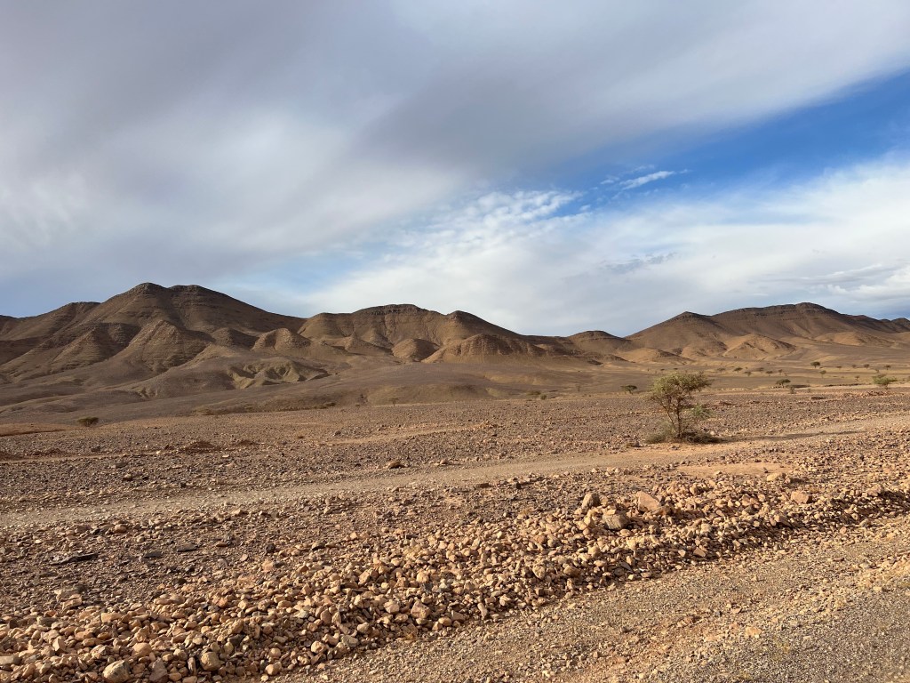 As we neared the coast the last mountains of the Anti Atlas dropped down behind us. The desert became sandier with rocky outcrops and an array of sand blasted sculptural landscapes. There were no oasis or nomads with their camels and goats. It was vast and empty as we approached Western Sahara. Larger towns seventy or so miles apart at first then a lot further apart the more south we got were our staging posts and stops for the night. The towns originally fishing villages were artificially enlarged by enticing people to settle in the disputed region through tax breaks and incentives. They weren’t pretty places but did the job for us.