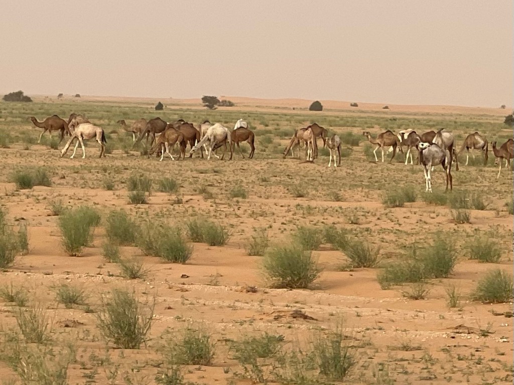 The third day, a really long one, over sixteen hours, 157 miles to Nouakchott the desert mellowed and became tamer. There had been rains turning many places green. The odd tree was appearing. Groups of tents made semi permanent settlements and there were large groups of camels grazing on the scrubby grass.