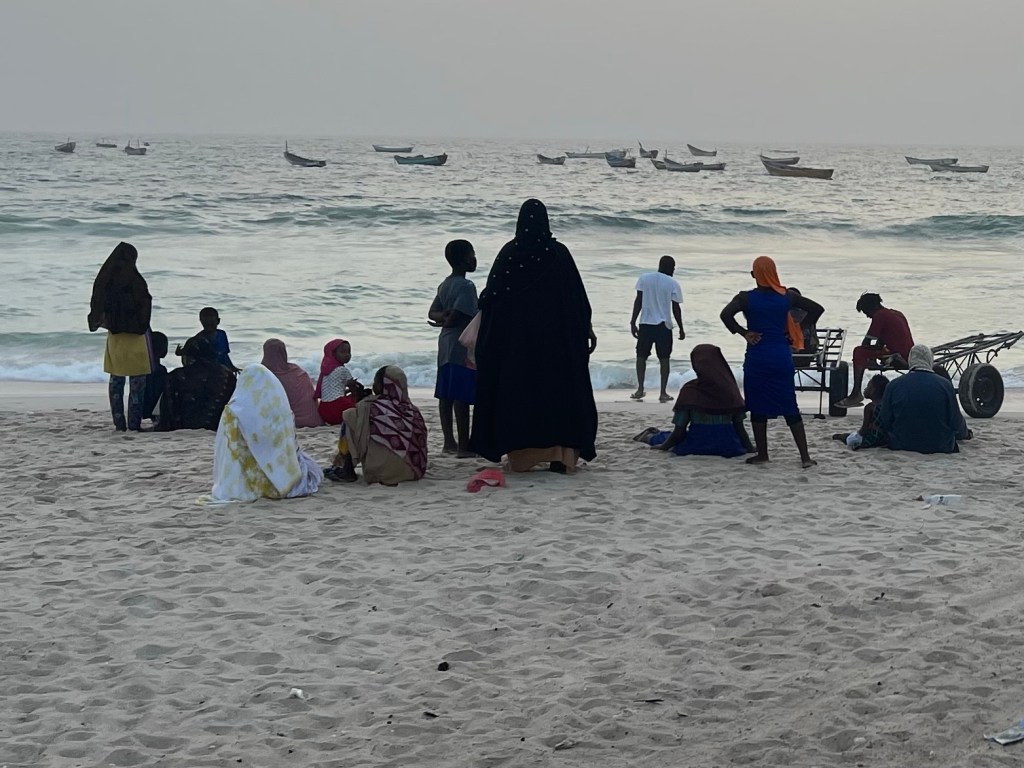 The high point of Nouakchott is the atmospheric fish market set on the beach. Frenetic activity as strikingly painted craft land their catch on the beach. High bowed slender fishing boats coming through the big swell and surf to awaiting labourers with trolleys on the beach. Quickly the crates of fish are transferred to the trolleys in the breaking waves chucking up gleaming white spray in the dark blue sea. Many hands struggling to turn the boating fighting the pounding of the sea, and then it’s off, crashing through the surf, the bow being chucked high as it manoeuvres back to the exposed anchorage out the back of the breaking waves. The big wheeled trolleys, loaded with the catch are dragged up the sandy beach to the fish market. Stalls with large concrete slabs display piles of huge fish. People are everywhere, shouting, hauling crates of fish, and rushing back to meet boats arriving in the surf. It’s a colourful scene and mesmerising to watch as the sun sinks down over the sea.
