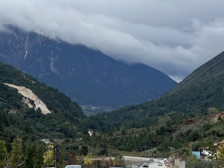 Welcome to Albania. We left our rusty ship and followed an Albanian registered red Ferrari to Passport control. The smart car was taken to one side for searching while we were directed on through negotiating the dilapidated flooded port road. Dark threatening clouds hung low round the mountains. We had to cross an 1100m pass and soon the torrential rain, thunder and lightning came in. The road turned into a river and the wind blew straight at us ferociously. The temperature dropped significantly and soon we were soaked to the skin. We continued climbing and knew there was a new tunnel at 400m elevation which would be a welcome alternative to the high pass in these conditions.