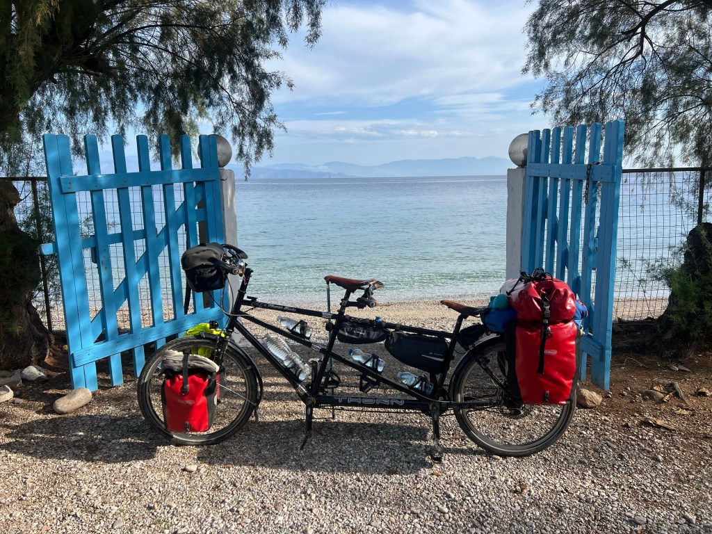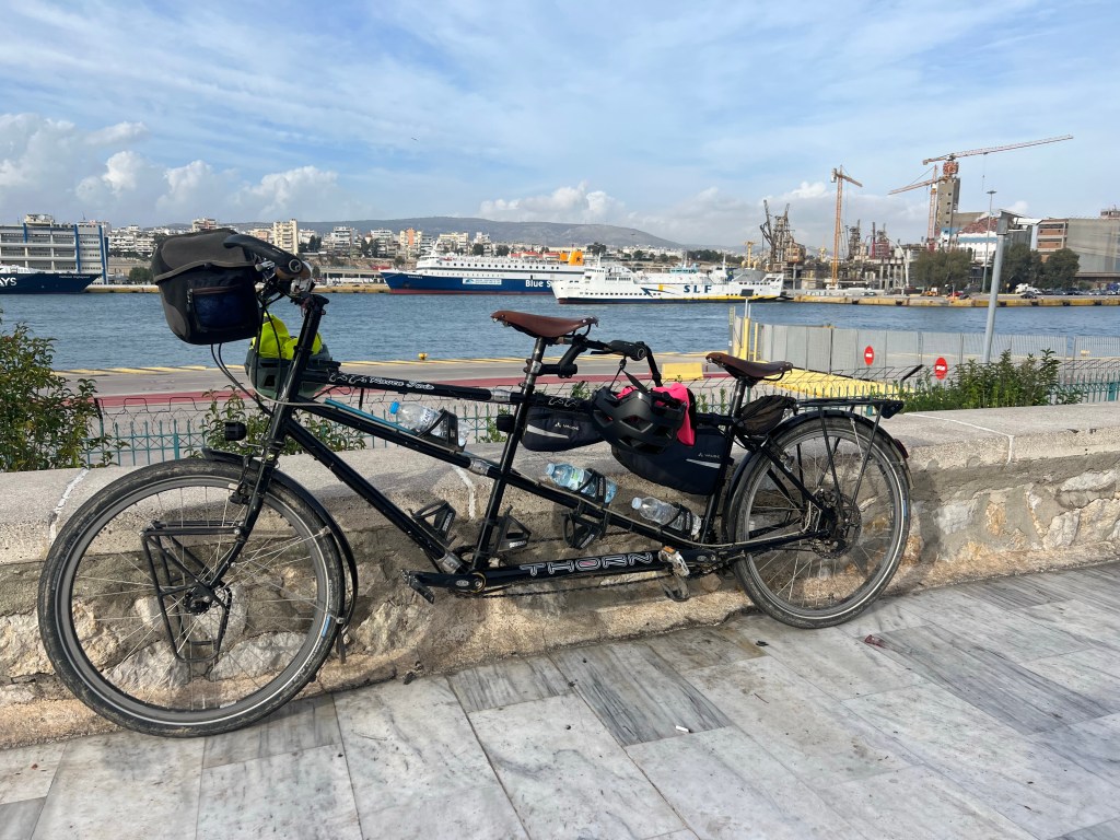 Crossing a lovely island and two short ferry trips made for a scenic and very Greek way of arriving in Athens.  3500km cycle from home and we had arrived at Athens, the end of this leg of Bike Ride to the Great Wall of China.